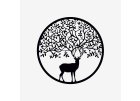 3D nástenný obraz s jeleňom a stromom života z čiernej HDF – okrúhly priemer 40 cm