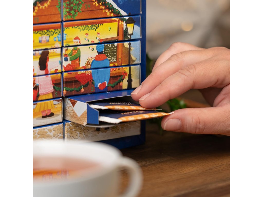 Každý deň objavíte nový čaj – od osviežujúcich bylinkových zmesí cez sladké ovocné variácie až po výrazné čierne čaje. Vďaka dvojitému počtu sáčkov si môžete adventné chvíle užiť spoločne vo dvojici alebo si dopriať extra šálku len pre seba.