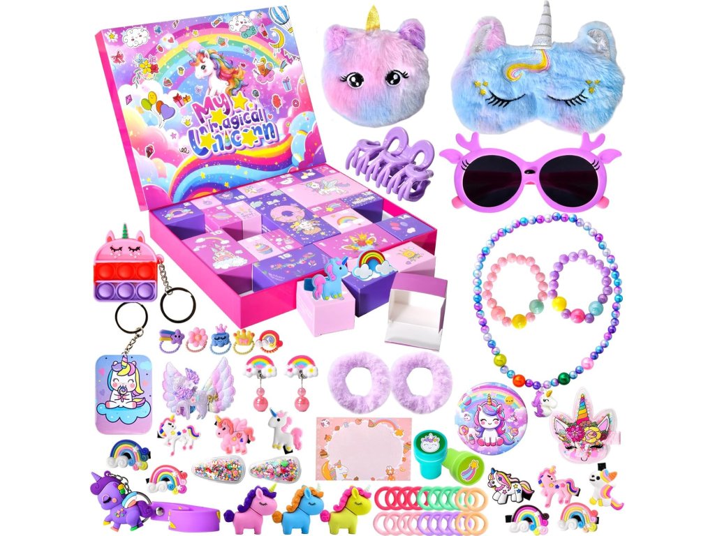 Tento adventný kalendár s jednorožcom prinesie malým princeznám kúzelný zážitok počas celého adventu. V krásnej farebnej krabičke sa skrýva 24 tajomných prekvapení – od trblietavých šperkov cez doplnky do vlasov až po veselé dekorácie s motívom jednorožcov.