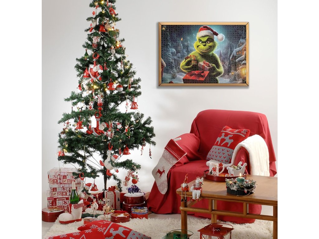 - 🎄 Po zložení vznikne krásny obraz s Grinchom, vhodný na zarámovanie