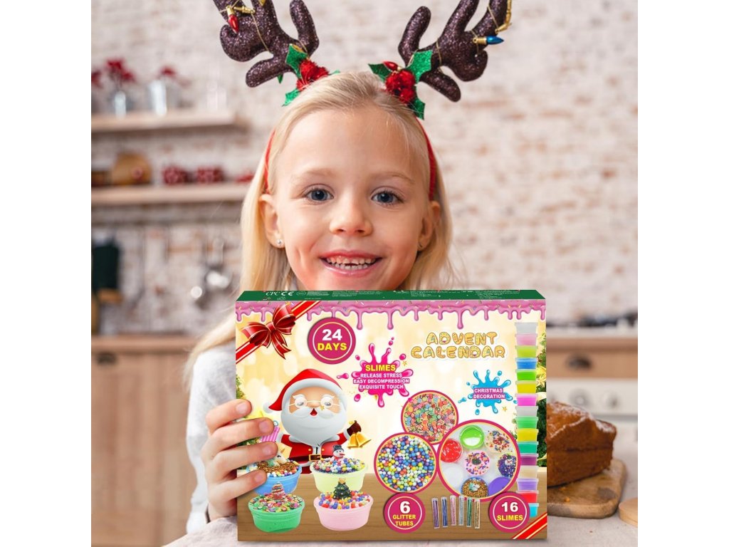 Tento slizový adventný kalendár je splneným snom všetkých detí, ktoré milujú farebné a kreatívne hračky. Každý deň odhalí nové prekvapenie – od kryštálových a fluffy slizov cez trblietky, penové guličky až po originálne ozdoby.