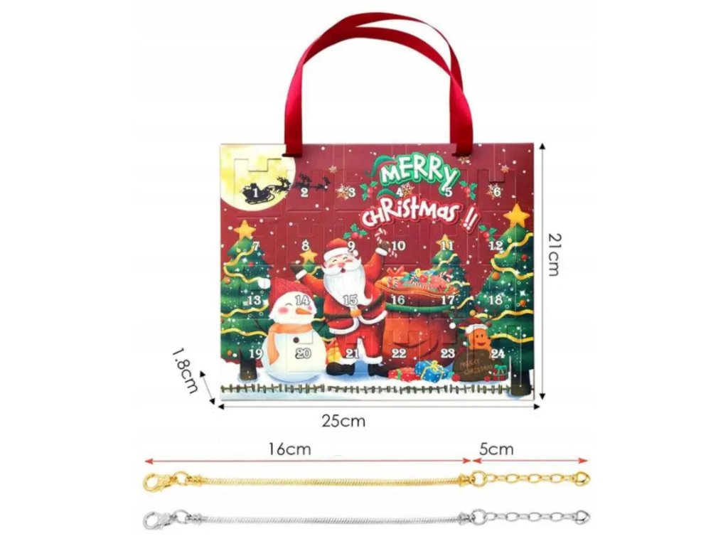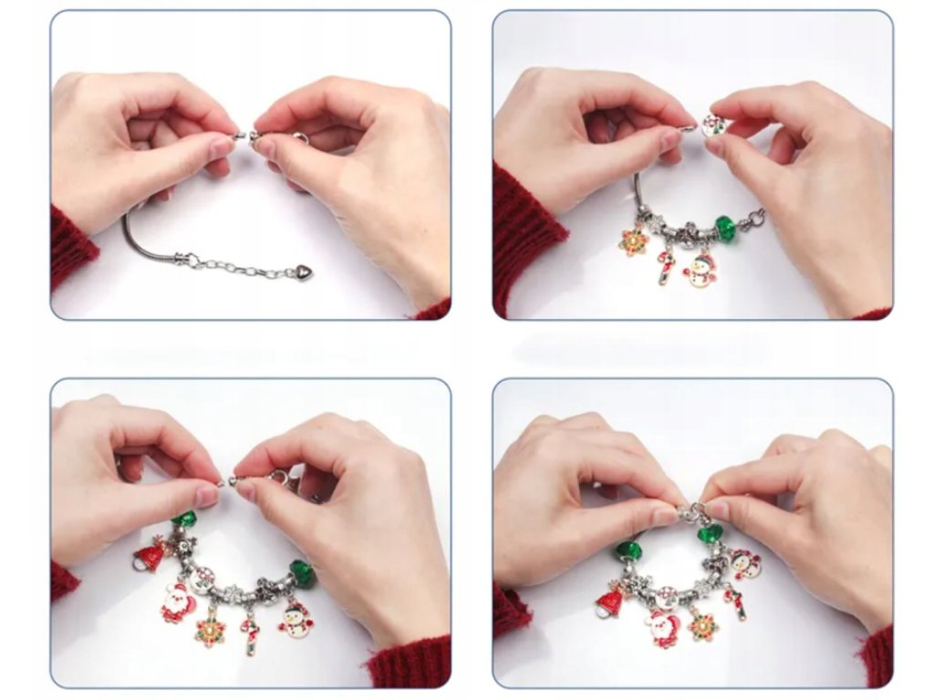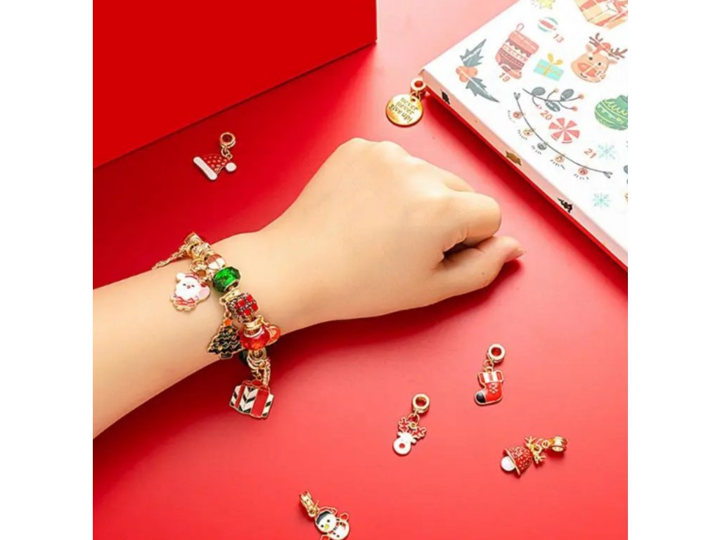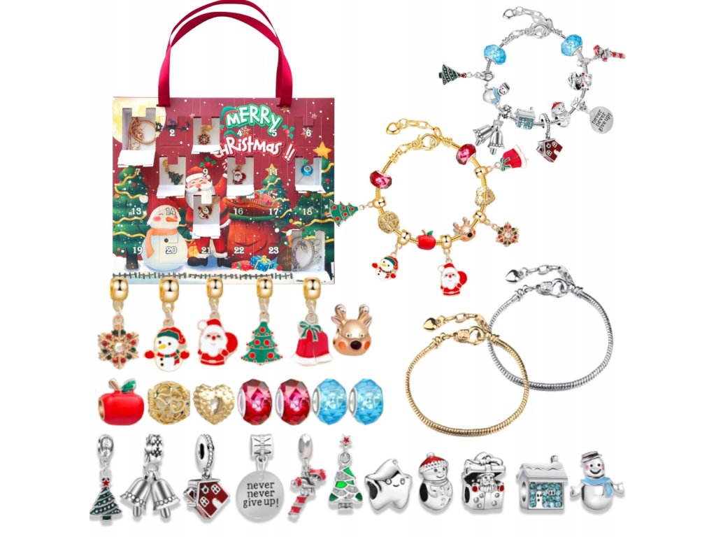 Súčasťou balenia sú 2 náramky v zlatej a striebornej farbe a 22 príveskov s rôznymi motívmi – od vianočných a zimných symbolov až po univerzálne kúsky, ktoré možno nosiť celý rok. Každý deň tak prinesie novú dávku kreativity a radosti.