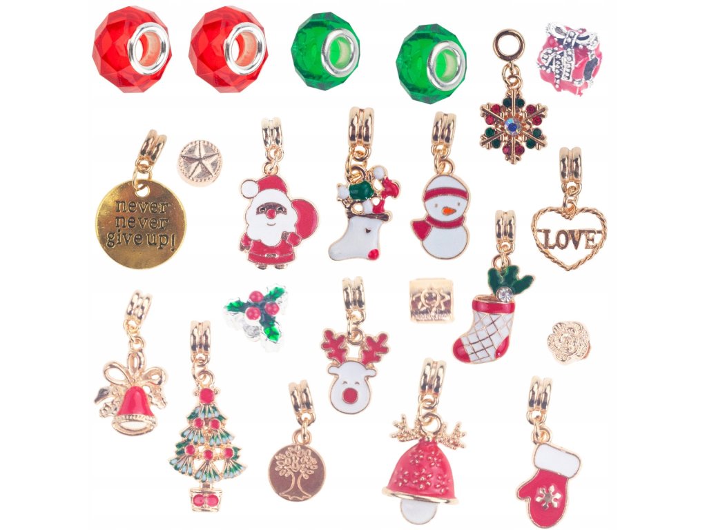 Adventný kalendár so šperkami prináša do predvianočného obdobia kúzlo elegancie a radosti. Za 24 okienkami nájdete dva náramky a 22 príveskov charms, ktoré môžete kombinovať podľa nálady a príležitosti. Niektoré prívesky majú univerzálny dizajn, vhodný na celoročné nosenie, iné sú ladené v čisto vianočnom duchu.