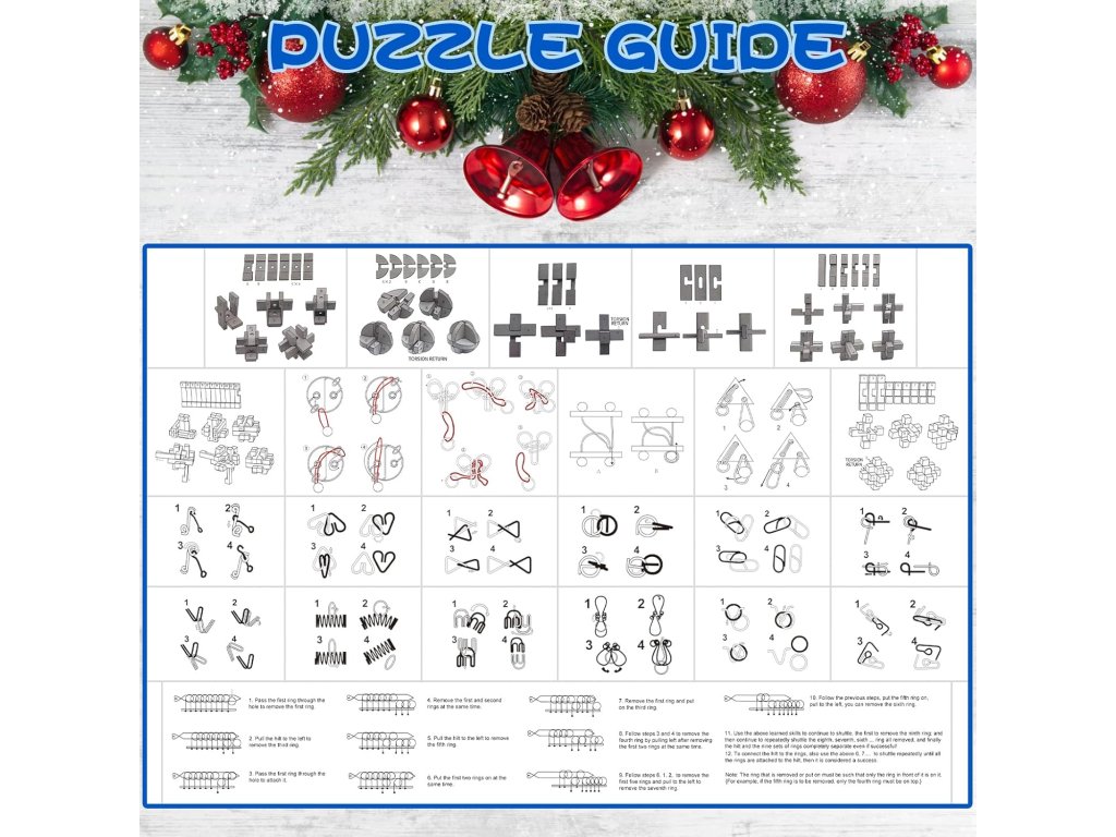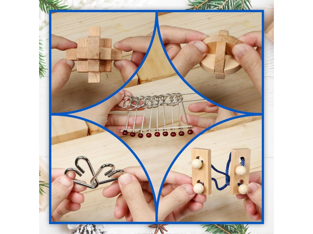 Obsahuje kovové aj drevené puzzle, ktoré sú kvalitne spracované a bezpečné na hranie. Vďaka rôznorodosti sú ideálne pre deti, tínedžerov aj dospelých, ktorí hľadajú zábavnú výzvu počas adventného obdobia.