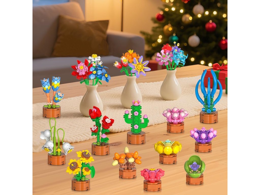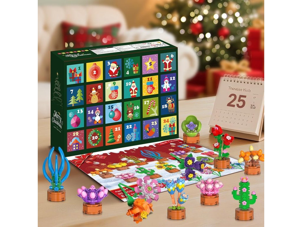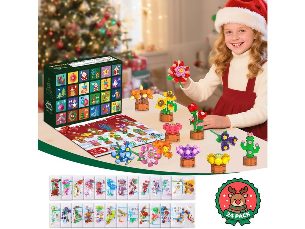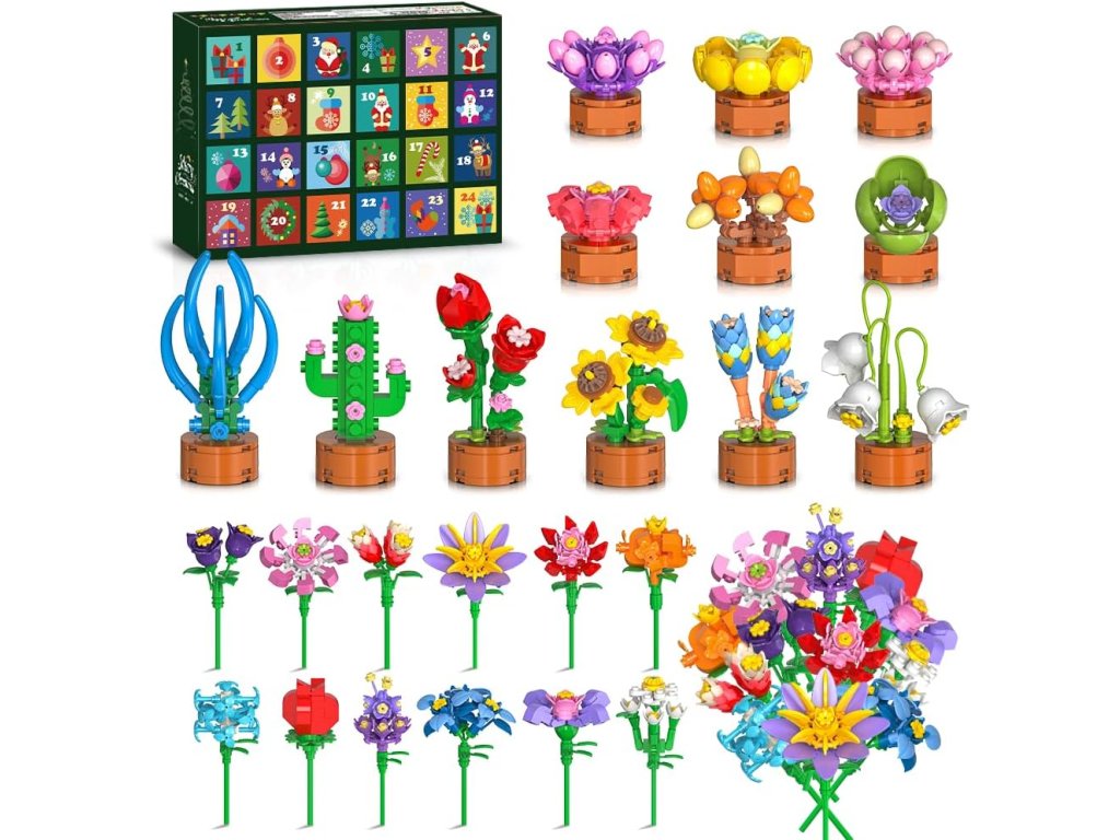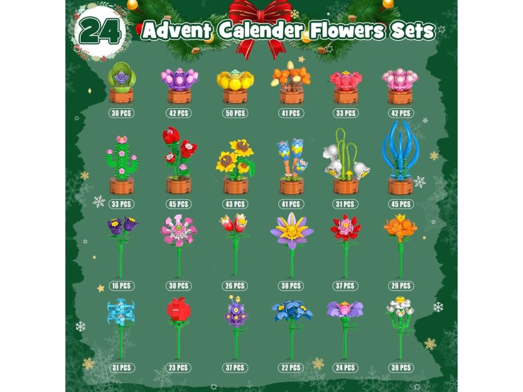 Adventný kalendár so stavebnicovými kvetmi – 24 mini setov kvietkov a sukulentov