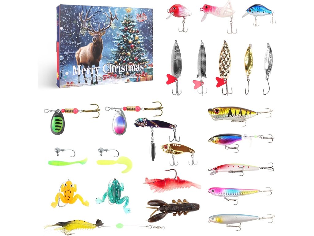 Tento adventný kalendár pre rybárov 2025 je ideálnym darčekom pre všetkých, ktorí milujú rybolov a chcú si užiť decembrové rána v rybárskom štýle. V 24 priehradkách sa skrýva kompletná sada nástrah – blyskáče, poppery, minnowy, žaby, twistre aj mäkké plastové rybky, vďaka ktorým si poradíte so sladkou aj slanou vodou.