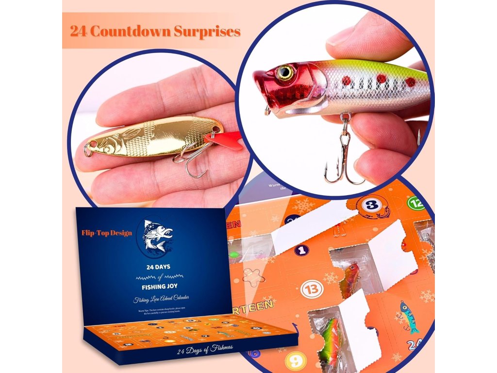 Adventný kalendár pre rybárov – 24-dielna sada nástrah na sladkovodný aj morský rybolov