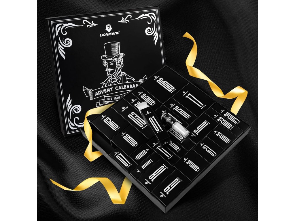 Tento luxusný pánsky adventný kalendár je naplnený 24 exkluzívnymi produktmi na starostlivosť o bradu, vlasy a telo. Každý deň od 1. do 24. decembra si obdarovaný otvorí nové okienko s kozmetickým alebo praktickým prekvapením.