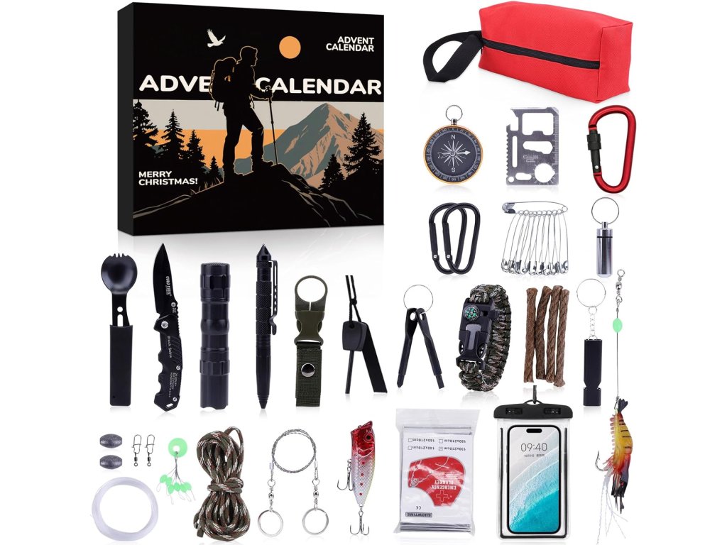 Tento originálny survival adventný kalendár obsahuje 24 rôznych nástrojov a doplnkov, ktoré sa hodia pri kempovaní, turistike, rybolove aj outdoorových výpravách. Od 1. do 24. decembra si postupne otvoríte nové prekvapenie – praktické vybavenie, ktoré vás nesklame ani v prírode.