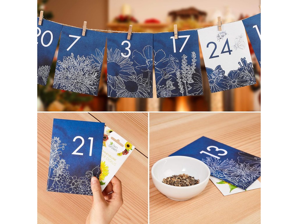 Vychutnajte si advent netradične – namiesto sladkostí vás tento kvetinový adventný kalendár 2025 od OwnGrown poteší 24 vrecúškami semien rôznych kvetov. Od slnečníc a margarétok až po divoké lúčne zmesi, každý deň vás čaká nové prekvapenie, ktoré rozžiari váš balkón, terasu alebo záhradu.