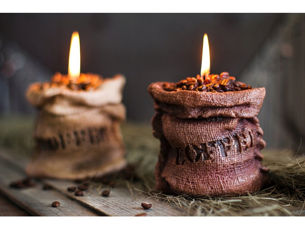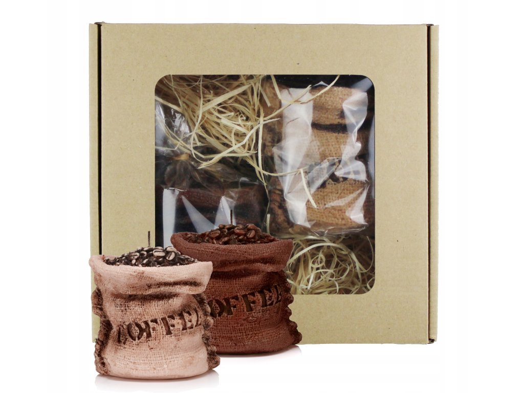 Dekoratívne sviečky Coffee v darčekovej sade – 2 kávové vrecúška bez vône