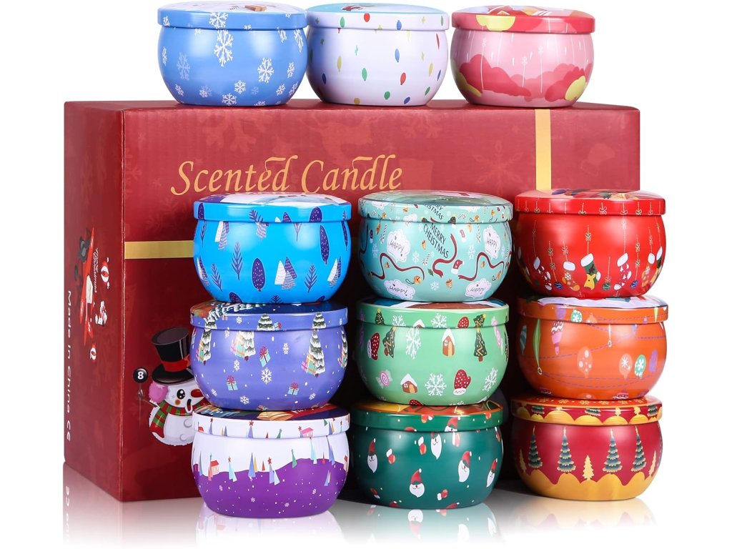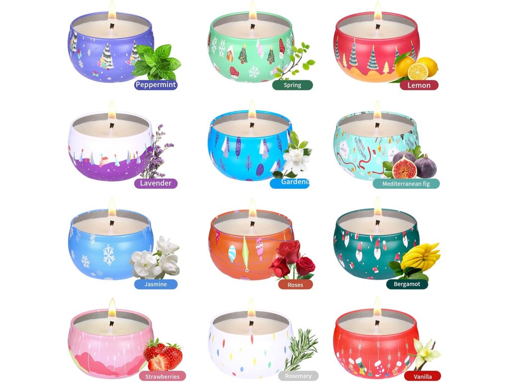 Darčeková kolekcia vonných sviečok – 12 vôní v štýlových vianočných dózach