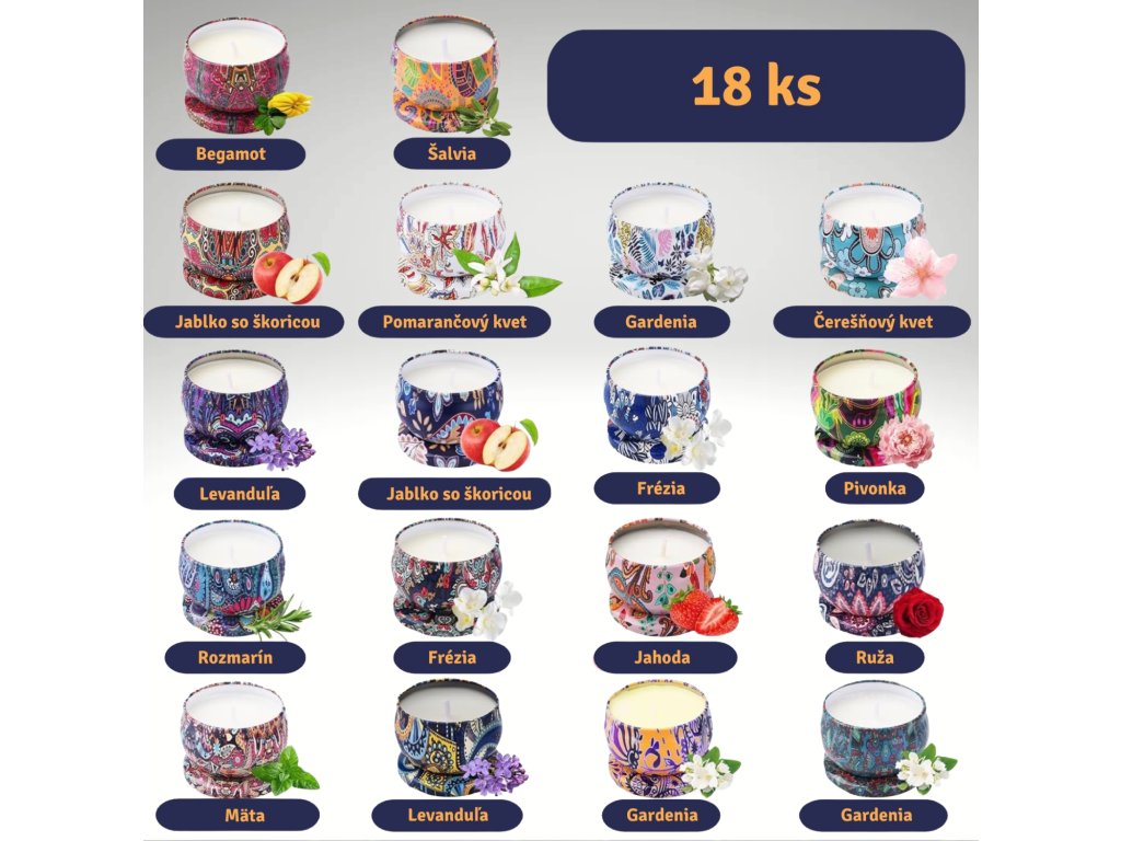 Darčeková sada sójových sviečok v dekoratívnych dózach – 18 kúskov pre relax a pohodu