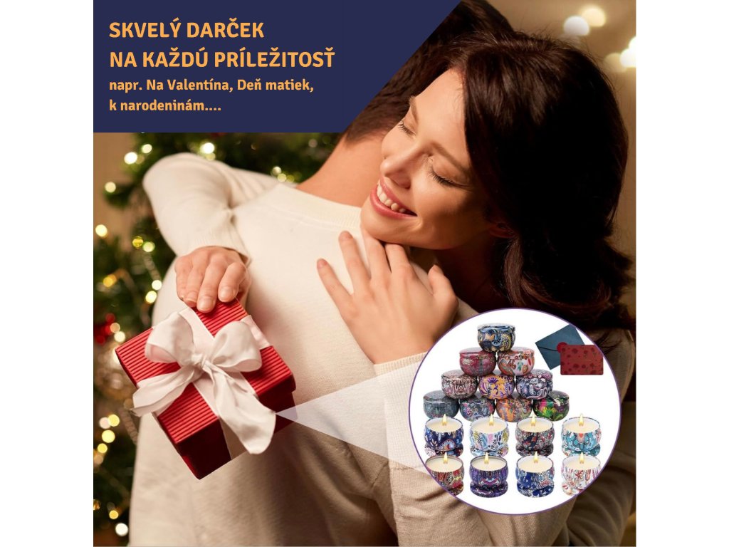 Darčeková sada sójových sviečok poteší každého milovníka vôní a útulnej atmosféry. V balení nájdete až 18 rôznych sviečok v štýlových dekoratívnych dózach, ktoré sú krásne aj po dohorení – môžete ich využiť ako malé šperkovničky alebo dekorácie. Sviečky sú vyrobené zo 100 % prírodného sójového vosku a majú bavlnený knôt, takže horia čisto, rovnomerne a bez toxického dymu. Každá sviečka vydrží horieť približne 15–20 hodín, čo znamená celkovú výdrž až 180 hodín. Elegantné balenie obsahuje aj blahoželanie, vďaka čomu je táto sada perfektným darčekom pre každú príležitosť – narodeniny, sviatok, Vianoce či ako milé poďakovanie.