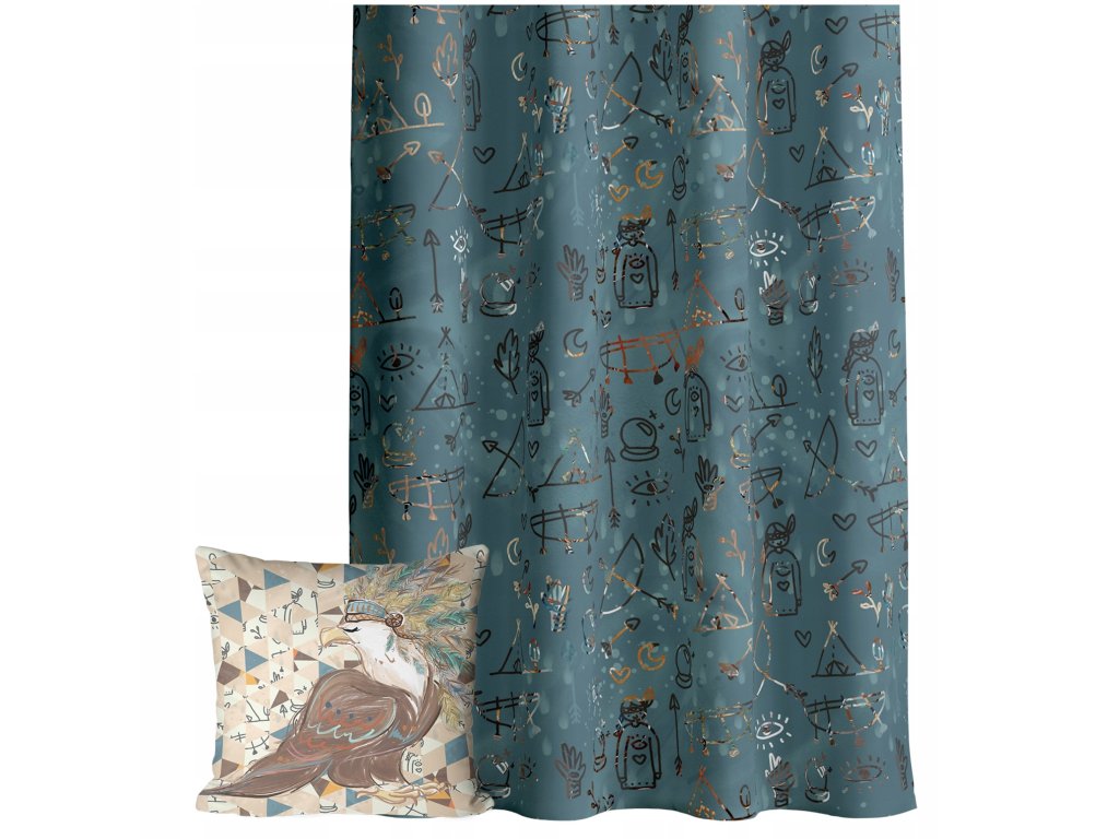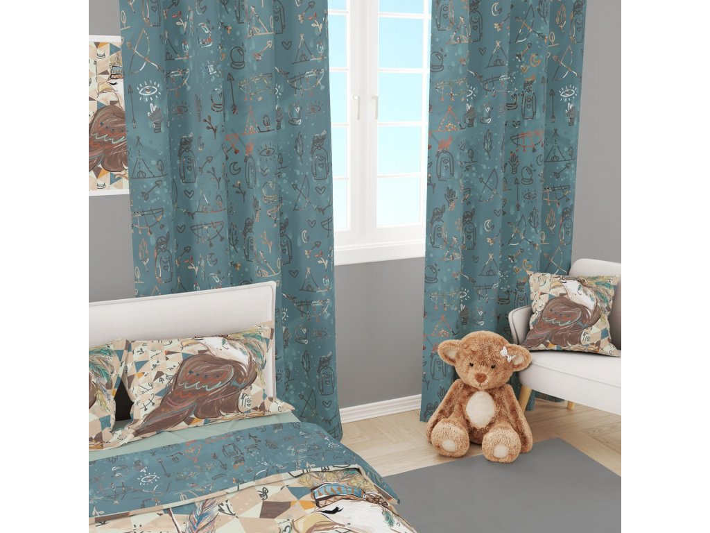 Predstavte si izbičku, kde každý malý symbol rozpráva svoj príbeh 🌙. Tieto detské závesy s lesnými kresbičkami – teepee, šípkami, lístkami a mesiačikmi – premenia priestor na miesto hier, objavovania a radosti. Hlboká petrolejová farba pôsobí útulne a moderně, vankúš v ladiacich odtieňoch s vtáčikom s pierkovou čelenkou dotvorí jedinečný charakter izby.