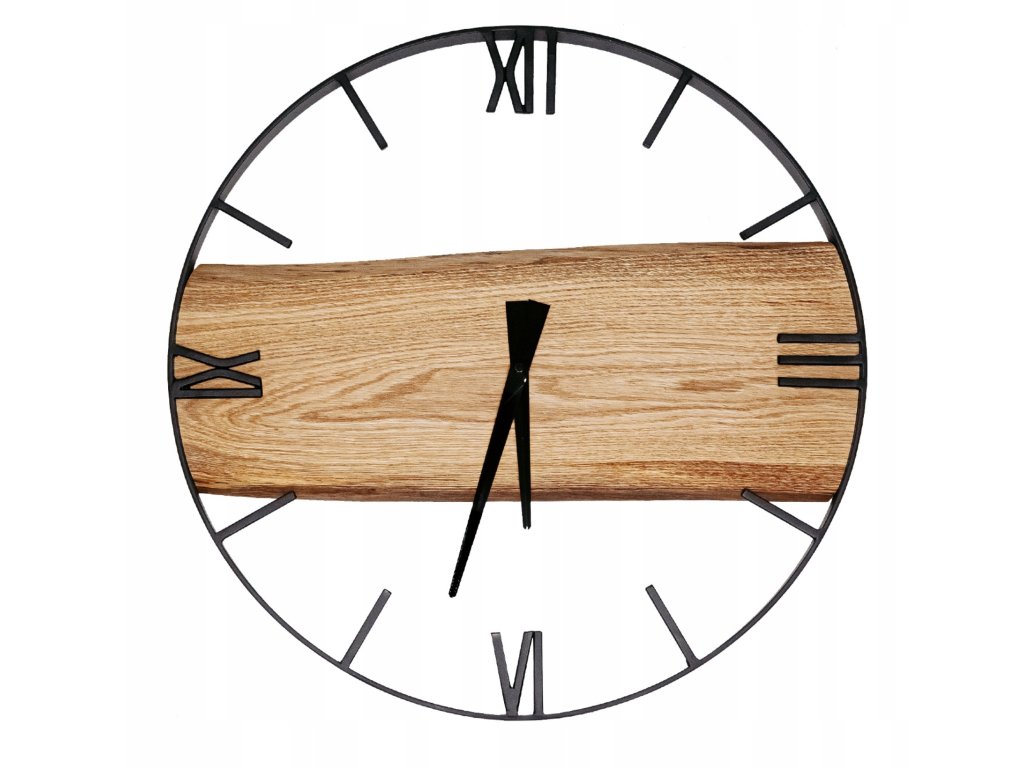 Tieto unikátne nástenné hodiny z masívneho dubového dreva sú výsledkom precíznej ručnej práce. Každý kus je jedinečný vďaka prirodzenému tvaru a kresbe dreva. Hodiny sú osadené v čiernom oceľovom ráme s rímskymi číslicami, ktoré im dodávajú moderný industriálny nádych. Čierne kovové ručičky zabezpečujú čistý a minimalistický vzhľad.