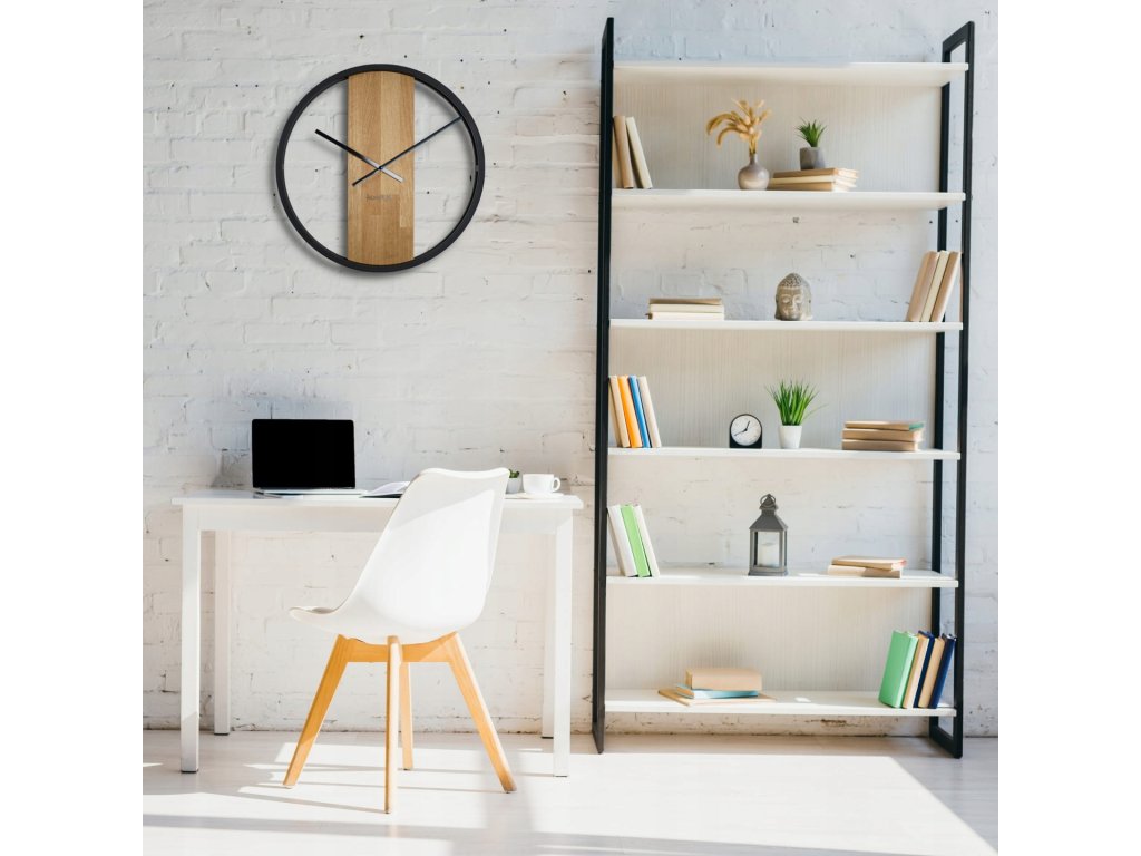 Tieto hodiny sú perfektnou voľbou do loftových interiérov, moderných obývačiek, kancelárií či ako pôsobivý doplnok do vstupných hál. Spojenie prírodného dreva s matným kovom vytvára vyvážený kontrast medzi surovosťou a eleganciou. Ak hľadáte originálny prvok na stenu, ktorý kombinuje funkciu, štýl a trvácnosť, práve ste ho našli.