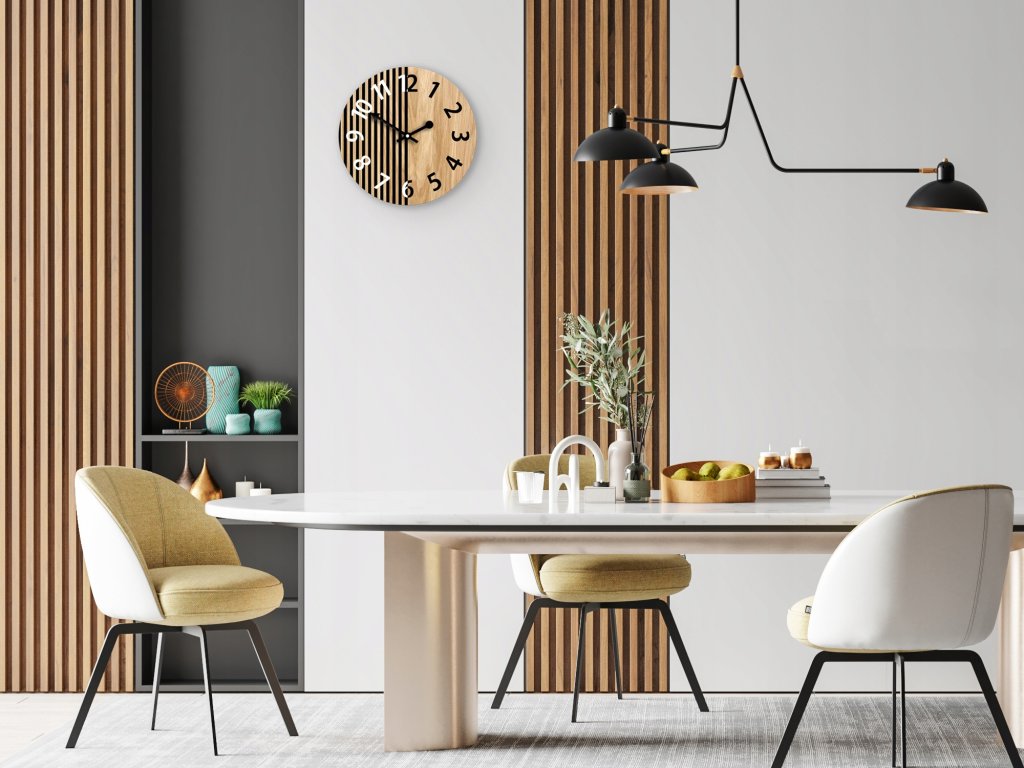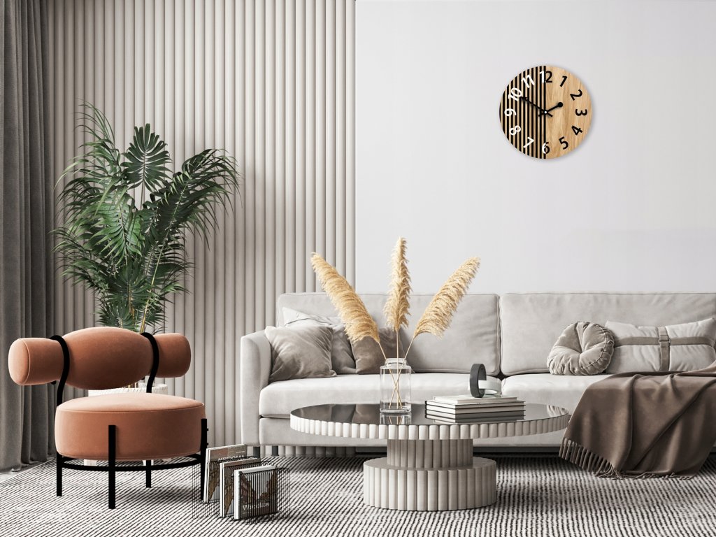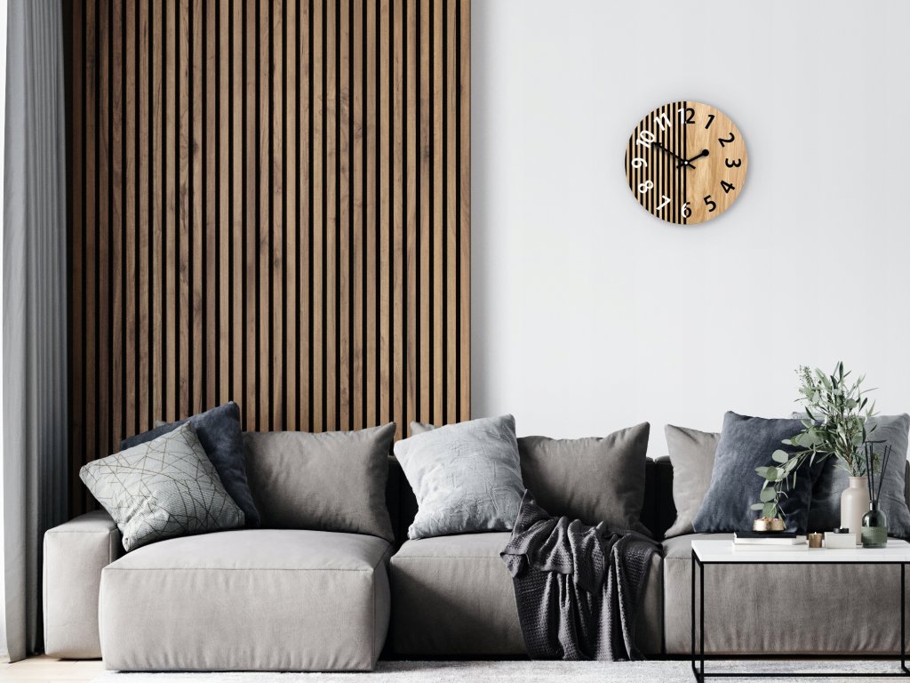 🛋️ Tip: Skombinujte hodiny s drevenými alebo čiernymi doplnkami pre harmonický a štýlový interiér