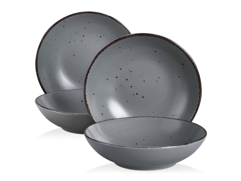 Sada 4 kameninových hlbokých tanierov – sivé bodkované s lesklou glazúrou, 20,3 cm