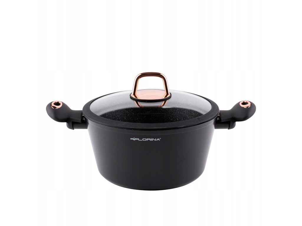Čierny hrniec s ružovozlatými detailmi – hliníkový hrniec s pokrievkou 4,2 l