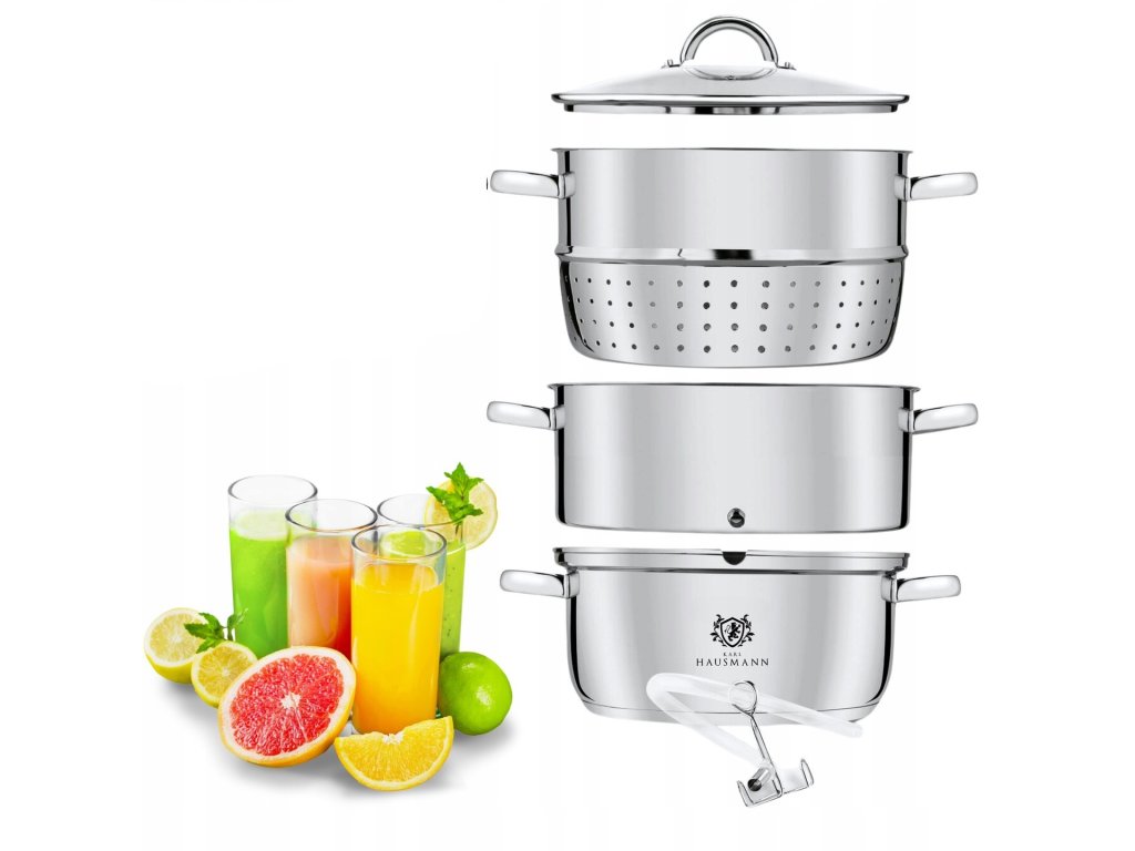 Špičkový odšťavovač na paru z nehrdzavejúcej ocele s objemom 8 litrov vám umožní pripravovať čisté a koncentrované šťavy z ovocia aj zeleniny bez potreby lisovania. Využíva prirodzenú silu pary, ktorá uvoľňuje šťavu priamo z dužiny a zachováva plnú chuť aj výživové hodnoty. Vďaka pribalenému sklenenému veko, hadičke s ventilom a univerzálnosti použitia (vrátane indukcie), je ideálny do každej kuchyne.