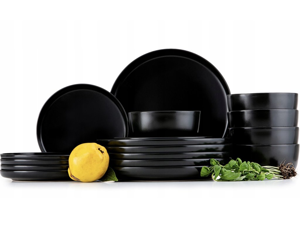 Špičková kameninová jedálenská súprava pre 6 osôb – čierna, 18 dielov