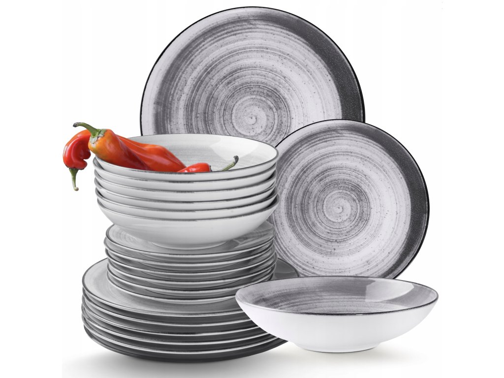 Špičková keramická jedálenská súprava v odtieňoch sivej – 18 ks pre 6 osôb