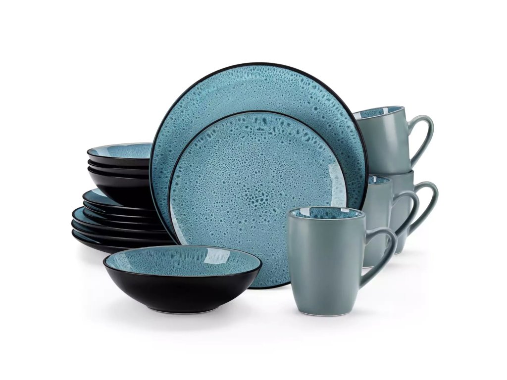 Špičková kameninová jedálenská súprava Bublia Aqua – 16 ks
