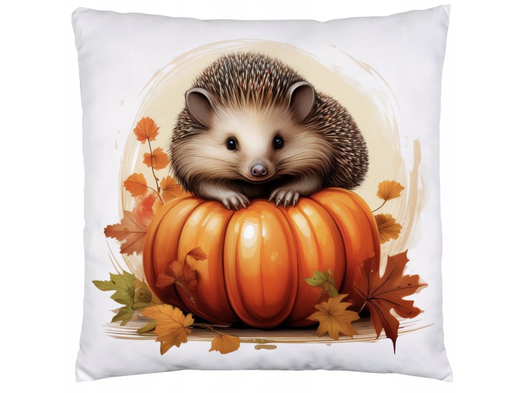 Jesenná obliečka na vankúš 40×40 – Ježko na tekvici v jesennom lístí