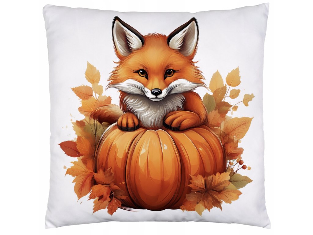 Jesenná obliečka na vankúš 40×40 – Líška na tekvici v jesenných farbách