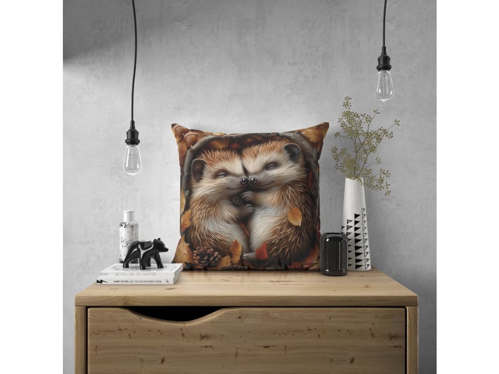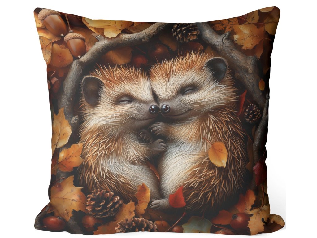 Jesenná obliečka Ježkovia – zamilovaný motív v lístí 40x40 cm