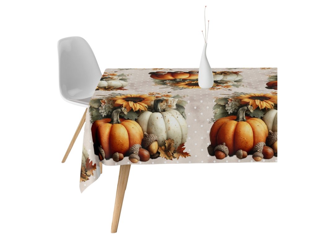 Jesenný obrus – motív tekvíc, slnečníc a žaluďov (teflónový, viac rozmerov)