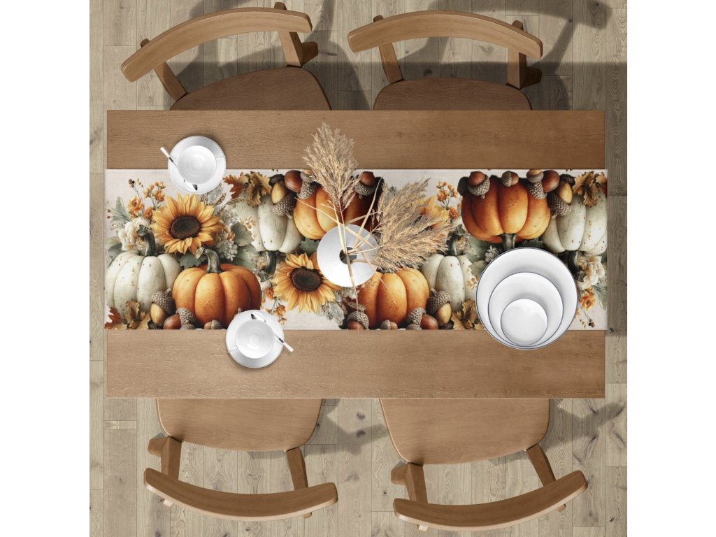 Jesenný behúň – motív tekvíc, slnečníc a žaluďov