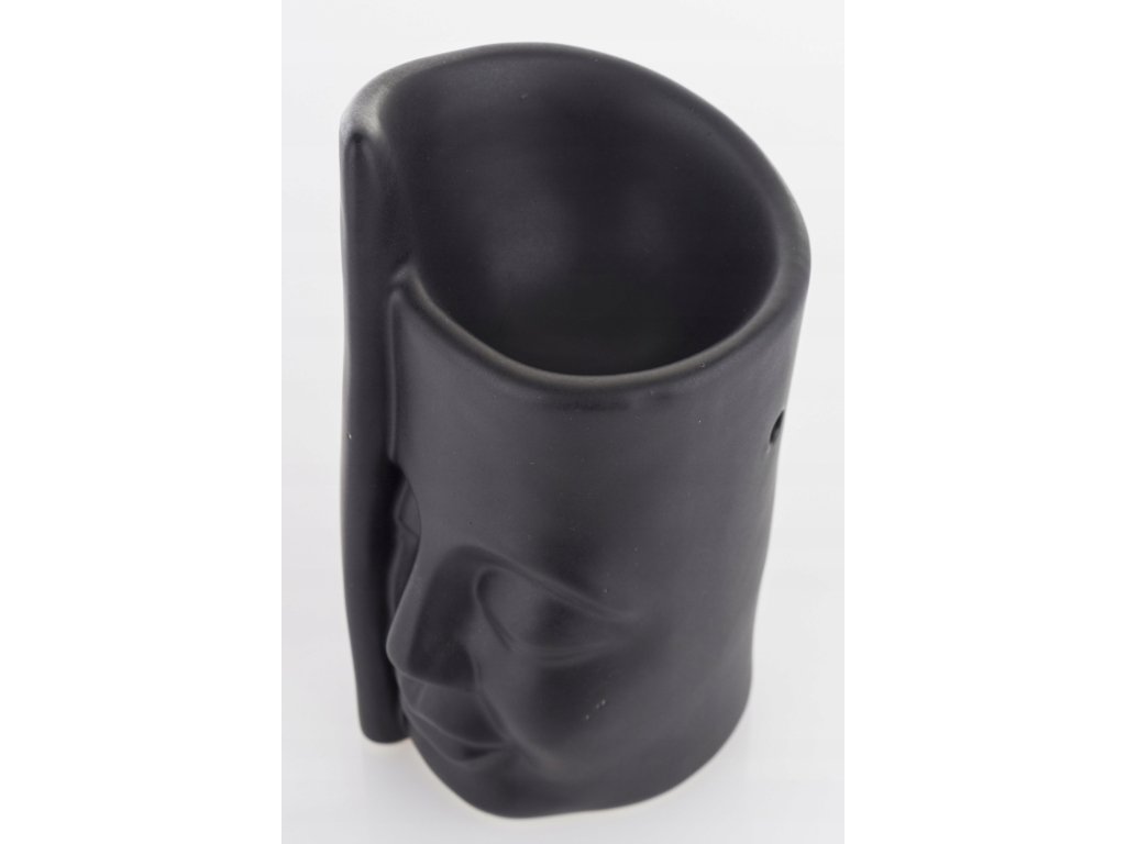 Originálna keramická aróma lampa v matnej čiernej farbe je štýlovým prvkom pre každého milovníka minimalizmu a nevšedných detailov. V prednej časti dominuje plastický reliéf tváre alebo otvor v tvare úst, čo dodáva lampe umelecký a zároveň hravý charakter. Do horného priestoru jednoducho nalejete trochu vody a pár kvapiek esenciálneho oleja či vosku – a s pomocou čajovej sviečky vznikne aromatická a relaxačná atmosféra. Vďaka svojmu rozmeru sa hodí na policu, komodu či nočný stolík a skvelo ladí s moderným, loftovým aj boho štýlom.