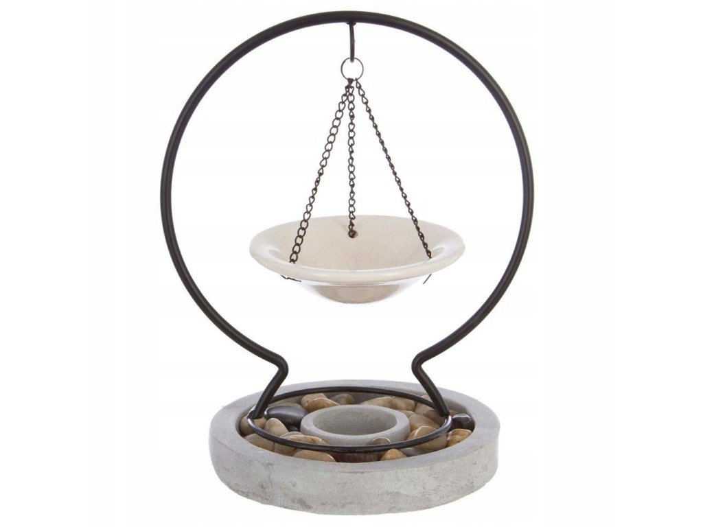 Unikátna aróma lampa inšpirovaná tradičným páleniskom je nielen funkčným, ale aj estetickým doplnkom do každej domácnosti. Základňa z pieskovca a okruh z dekoračných kamienkov dopĺňa zavesená keramická miska, do ktorej môžete naliať esenciálny olej alebo vložiť vosk. Podsvietenie čajovou sviečkou zabezpečí rovnomerné uvoľňovanie vône, ktorá navodí pocit pokoja, uvoľnenia a tepla domova.