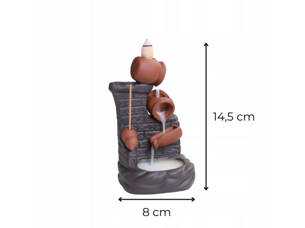 Keramická aromalampa s efektom vodopádu je výnimočným doplnkom pre milovníkov aromaterapie a meditácie. Po zapálení vonného kužeľa sa hustý dym elegantne prelieva cez kaskády ako vodopád, čím vytvára hypnotizujúcu a pokojom nabitú atmosféru. Tento dizajnový kúsok sa skvele hodí do obývačky, spálne či meditačného kúta. Vhodná na vonné kužele typu backflow aj vonné tyčinky, ktoré je možné upevniť zboku. Praktická kombinácia estetického dizajnu a funkčnosti robí z tejto aromalampy skvelý darček pre každého, kto miluje pohodu, pokoj a originálnu výzdobu interiéru.