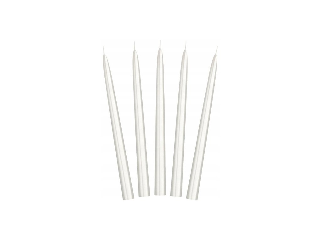 Biele perleťové kónické sviečky 24 cm – sada 10 kusov