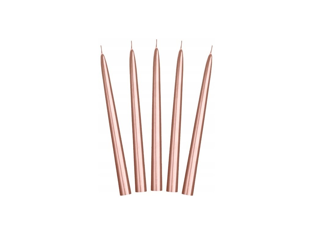 Ružovo zlaté kónické sviečky 24 cm – sada 10 kusov