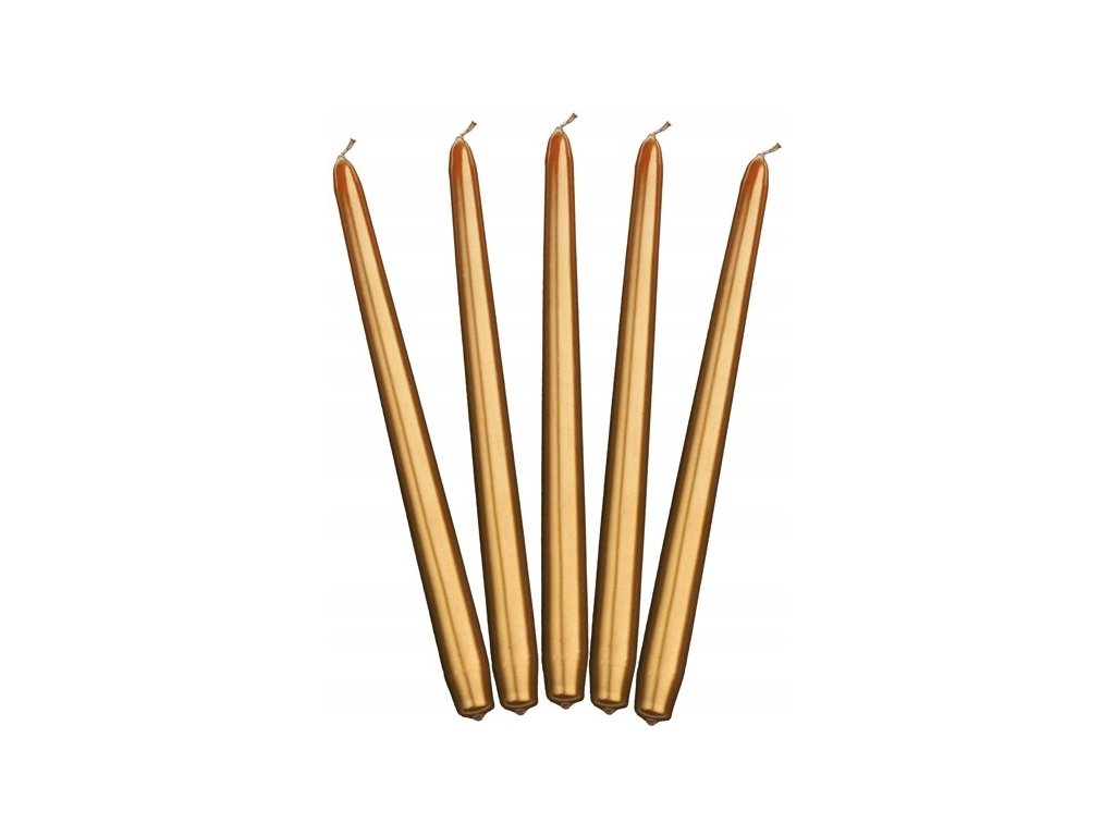 Metalické zlaté kónické sviečky – výška 29 cm, sada 10 kusov