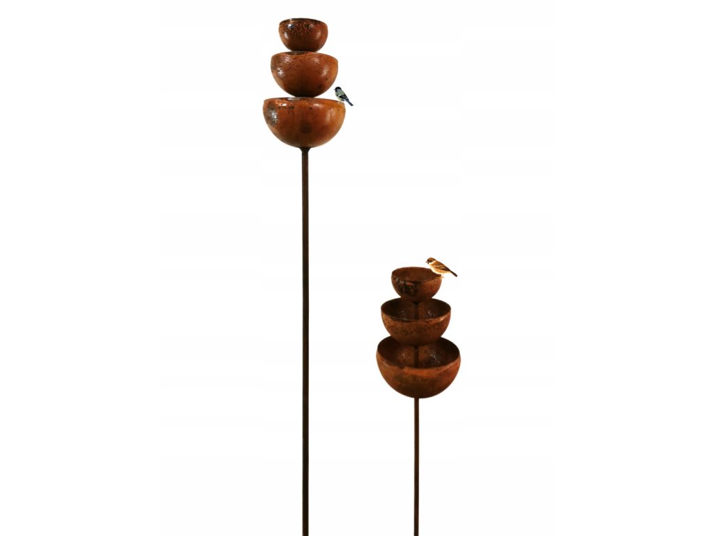 Kovové napájadlo pre vtáky – výška 105 cm, prírodná hrdza