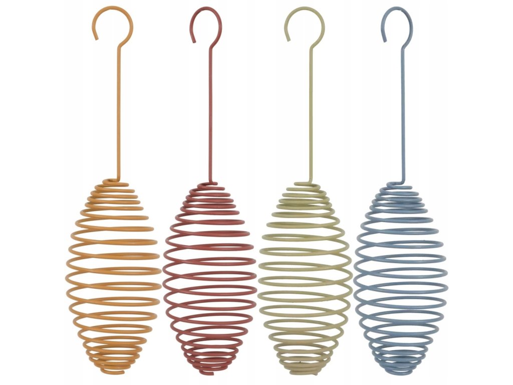 Sada kovových špirálových kŕmidiel – 4 farebné závesné kŕmidlá na lojové gule pre vtáky