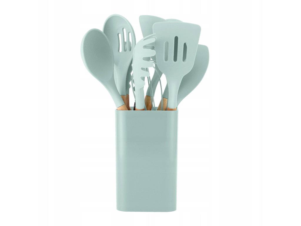Silikónová sada kuchynských pomôcok pistáciovej farby – 12-dielna so stojanom