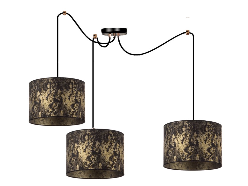 Dizajnový trojramenný spider luster zo série Luxury Snake spája čierne tienidlá so zlatým „hadím“ vzorom, ktorý sa jemne trbliece aj pri zhasnutom svetle. Po rozsvietení vytvára teplý, noblesný efekt. Tri samostatné závesy môžete viesť po strope a rozmiestniť ich presne podľa priestoru – nad jedálenský stôl, ostrov alebo do stredu miestnosti.