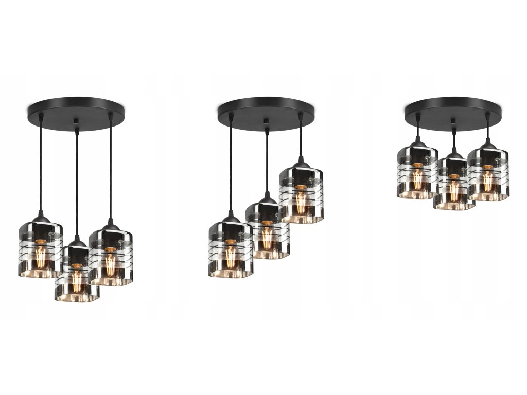 Závesné svietidlo Silver Stripe – 3-bodové, sklenené tienidlá v striebornom pruhovanom dizajne