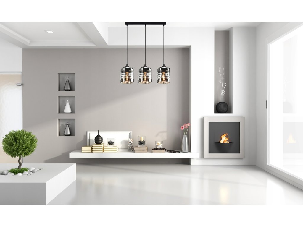 Toto dizajnové závesné svietidlo zo série Silver Stripe prináša do interiéru jemný metalický lesk a nadčasovú geometriu. Tri dymovo-strieborné sklenené tienidlá s priesvitnými pruhmi vytvárajú príjemnú atmosféru nad jedálenským stolom, v kuchyni aj v obývačke.