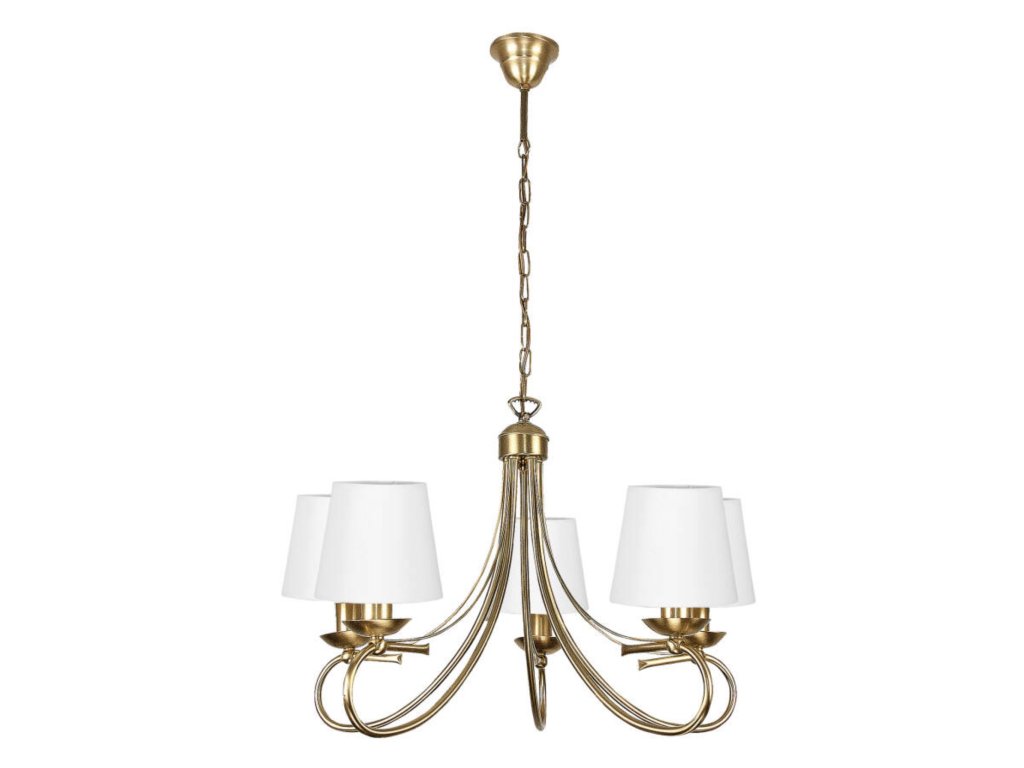 Luxusný závesný luster Golden Elegance – päťramenný dizajn s bielymi tienidlami