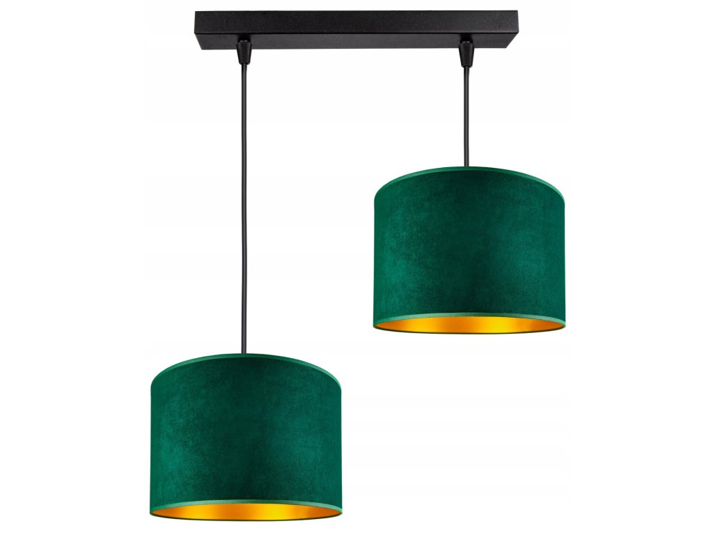 Závesné svietidlo Emerald Glow – dvojité smaragdové zamatové tienidlá so zlatým vnútrom