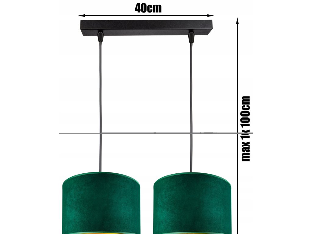 Toto dvojité závesné svietidlo zo série Emerald Glow okúzli jedinečným dizajnom. Smaragdové velúrové tienidlá so zlatým vnútrom vytvárajú hrejivé a elegantné svetlo, ktoré dodá každej miestnosti luxusný charakter.