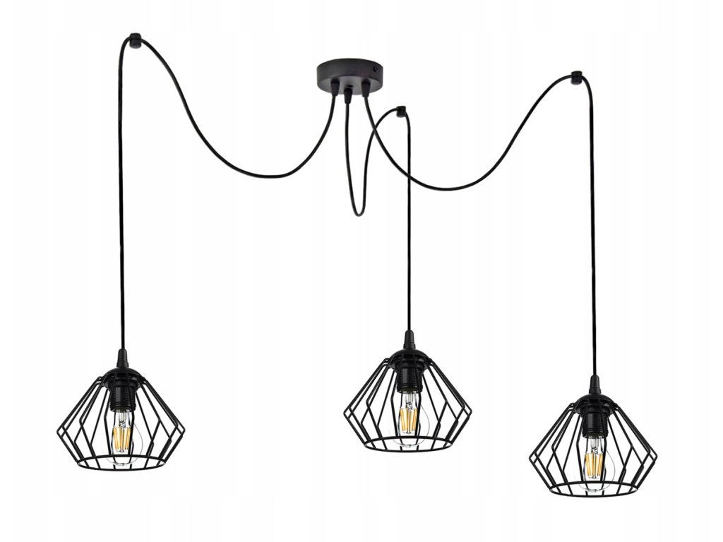 - 🖤 Industriálny dizajn „pavúk“ – tri tienidlá v štýle loftovej klietky