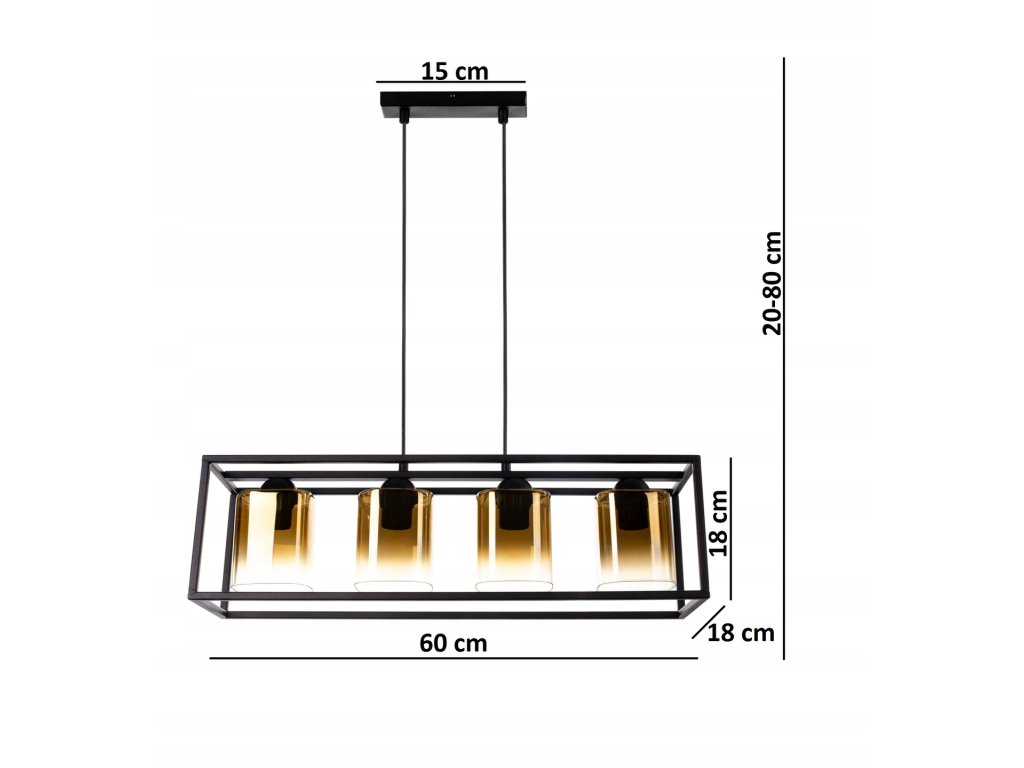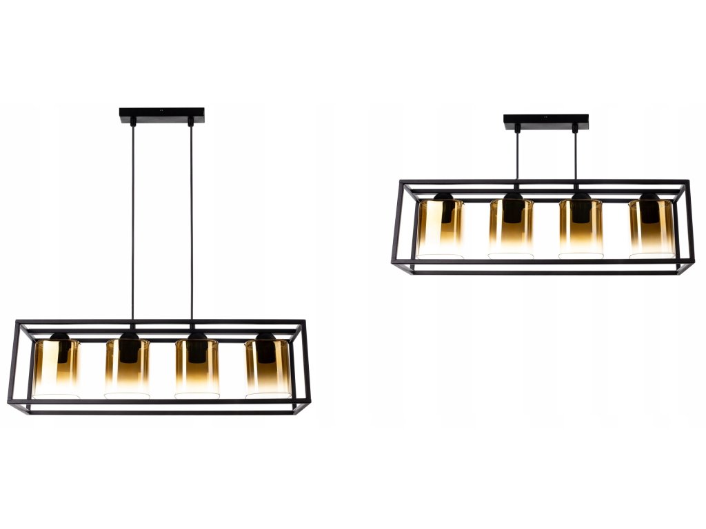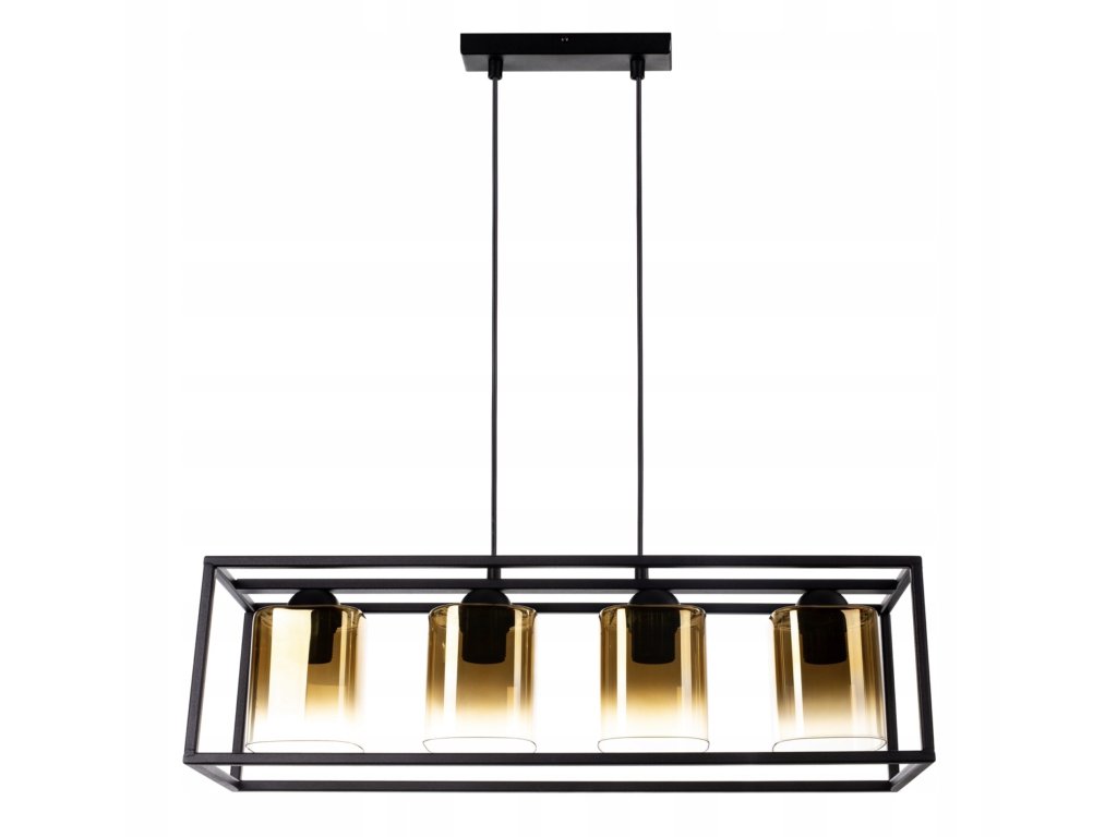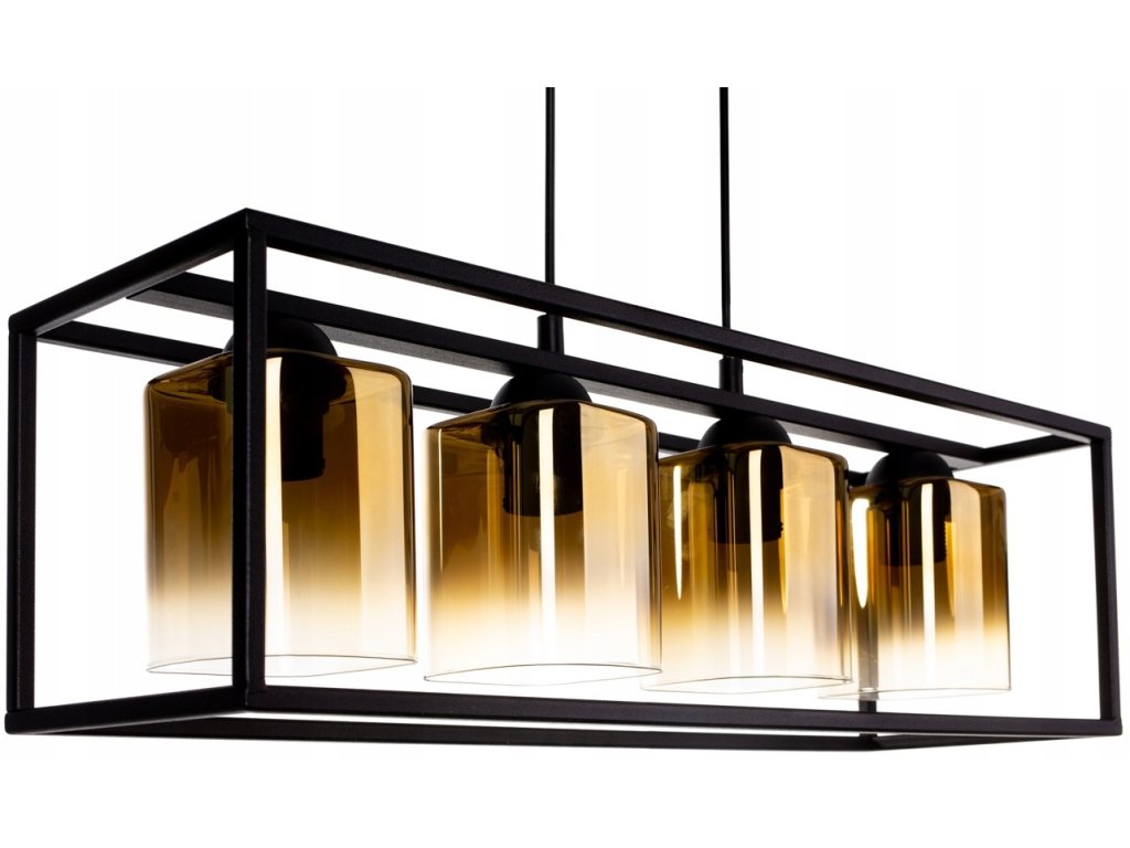 Závesné svietidlo Amber Frame – štvorramenný loftový dizajn s jantárovým sklom